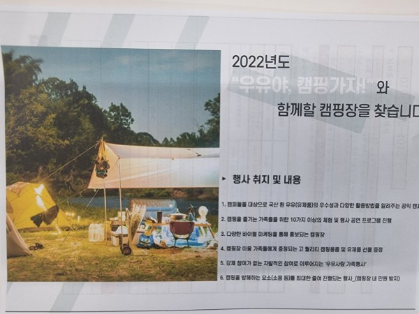 우유자조금관리위원회 주관으로 "우유야 캠핑가자" 주제로 알멕스랜드 캠핑장에서