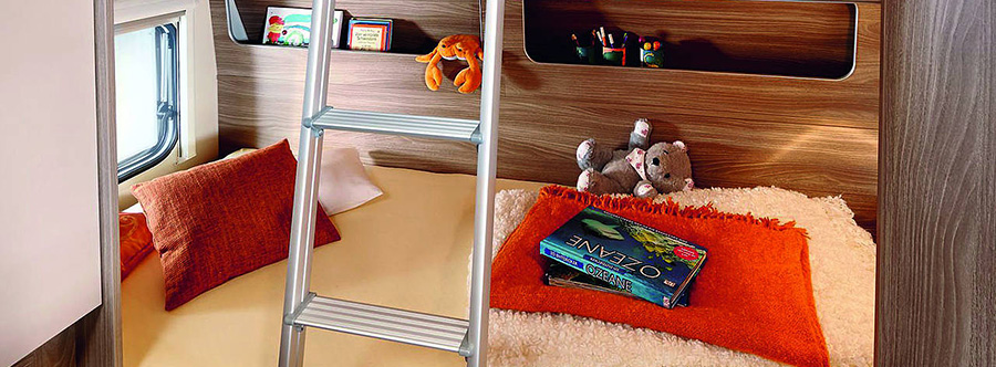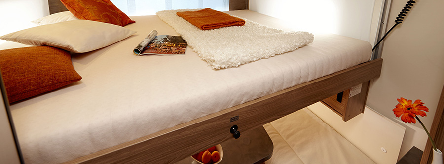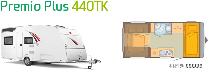 총 6명이 여유있게 잘 수 있는 침실공간은 다른 카라반에서는 찾을 수 없는 프리미오 플러스만의 장점입니다.