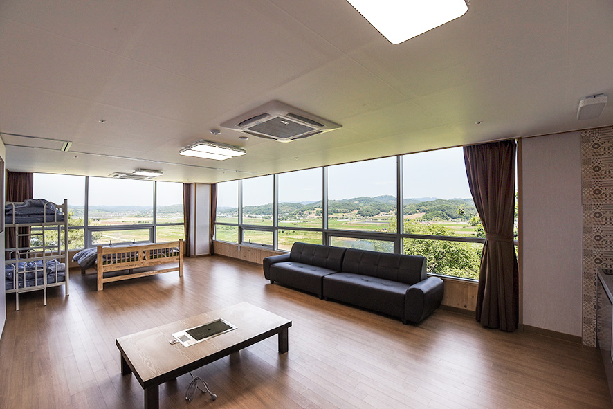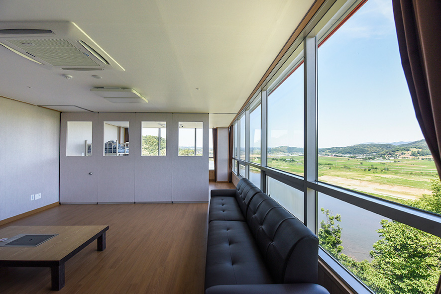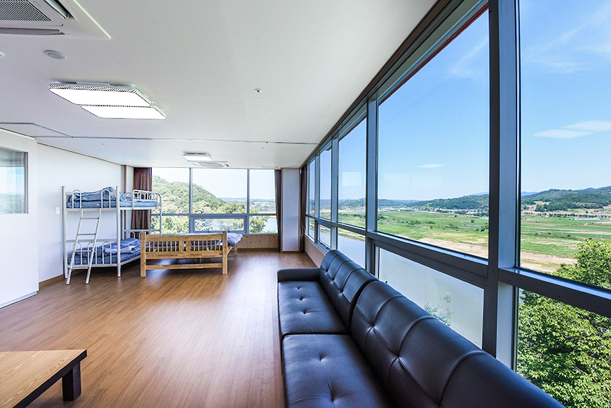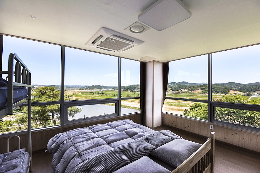 아늑한 침실과 자연채광이 완벽한 조화를 갖춘 창가에서 바라보는 임진강의 자태를 180도 조망할 수 있는 스위트 룸입니다.